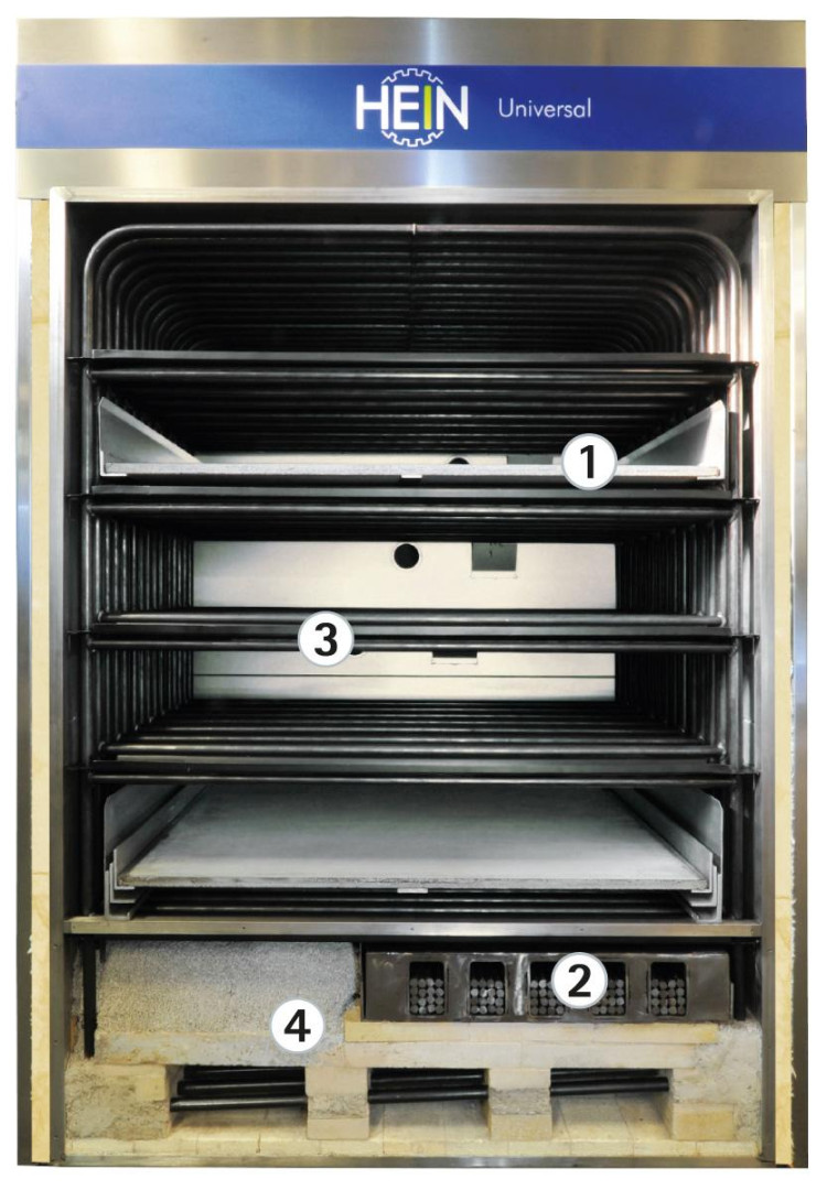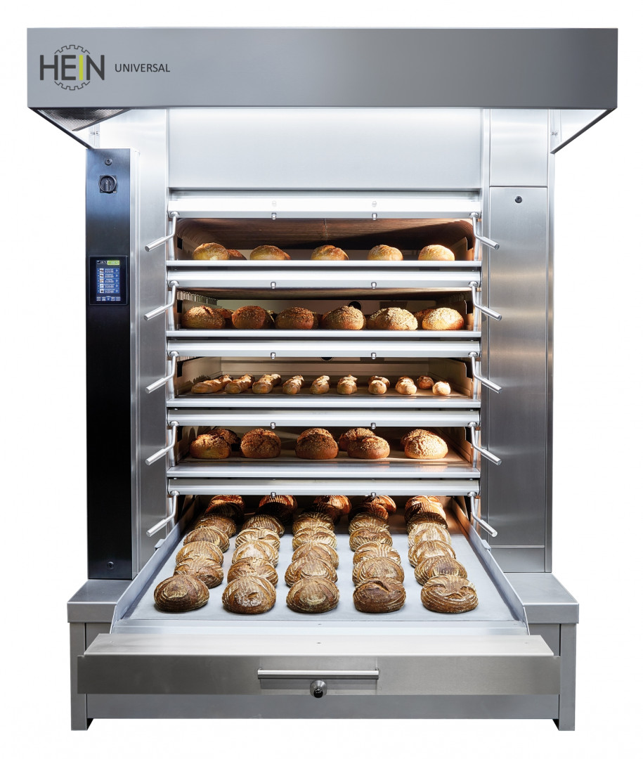 Der HEIN-UNIVERSAL wird von in der Thermosteinfeuerung integrierten Ringrohren beheizt. Die Ringrohrgruppe ist mit einer exakt berechneten Menge Wasser aufgefüllt. Ohne Pumpe und ohne Lärm verteilt sich der Wasserdampf im ganzen Rngrohrsystem. Die natürliche Wärmeübertragung und die sehr leistungsfähigen Schwadenanlagen sorgen für ein konkurenzlos gutes Backverhalten. Als Option können wir den HEIN-UNIVERSAL mit einem Computer ausstatten, der die verschiedenen Backprozesse genau steuert und überdies 100% Kompatibilität mit dem HEIN-SPIDER Beschickungssystem gewährt.