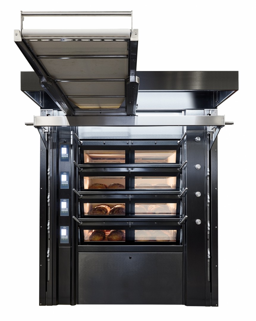 3, 4, 5, ou 6 étages complètement étanches pouvant être réglés indépendamment, (réglage individuel de la sole et de la voûte). Chaque étage est équipé d’un appareil à vapeur surpuissant. La façade complète ainsi que les portes d’enfournements brevetées sont construites en inox 2,5 mm. Chaque étage est équipé d’une soupape de surpression, ne nécessitant aucun entretien.
